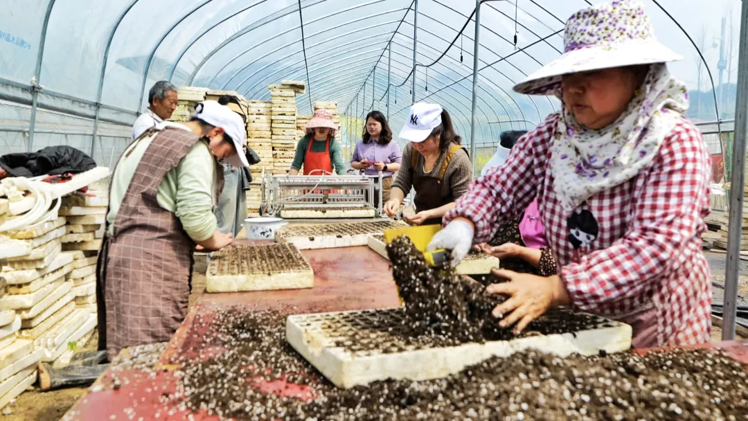 古路镇辣椒育苗基地,工人育苗忙。