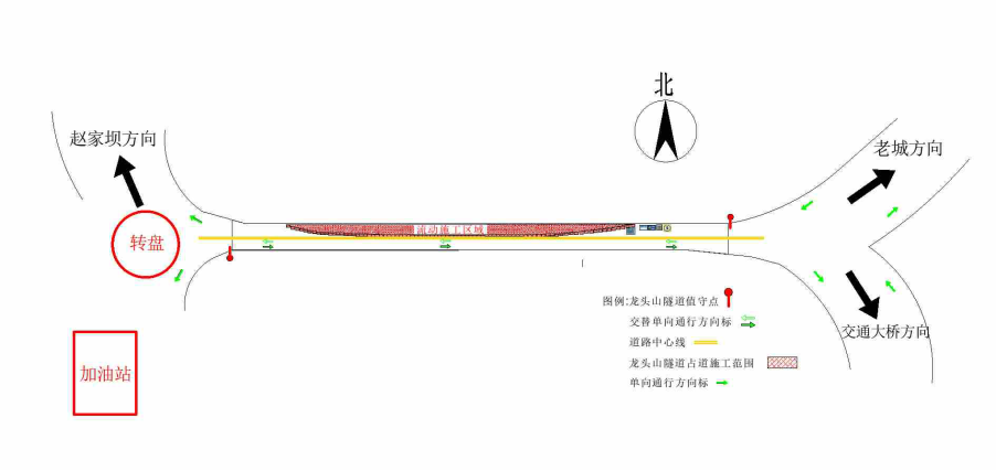 巫溪县龙头山隧道北侧半幅路面占道施工及通行示意图