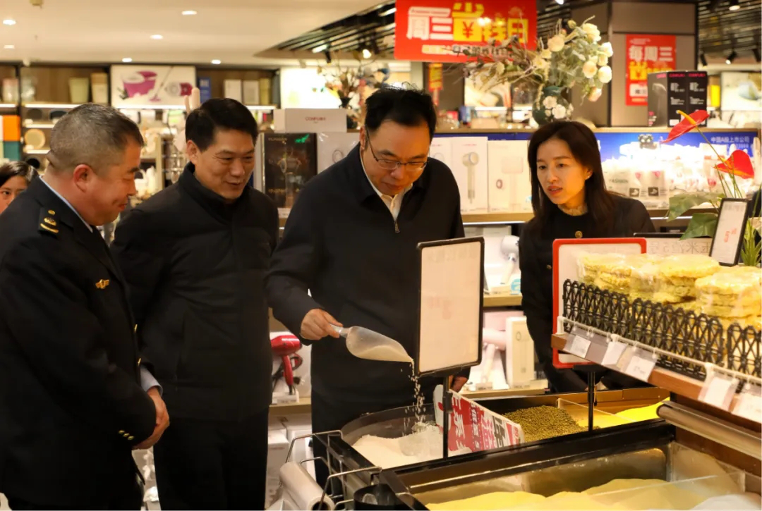 春节将近,城区内各大商超人头攒动、橱窗里年货商品琳琅满目,年味渐浓、喜庆氛围浓厚。在我的家生活超市,李卫东边走边看,详细了解商品供应、物价、进货渠道等情况,检查消防安全设施运行情况。他强调,春节期间,各商超企业要抓住春节消费旺季特点,开展形式多样的促消费活动,丰富产品和服务供给,更好满足群众需求。有关部门要加强价格监管和安全管理,保障“菜篮子”“米袋子”“果盘子”量足价稳,守护好群众“舌尖上的安全”。